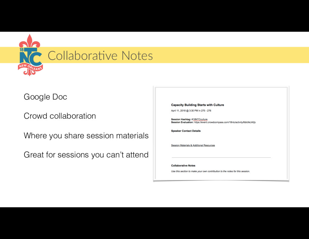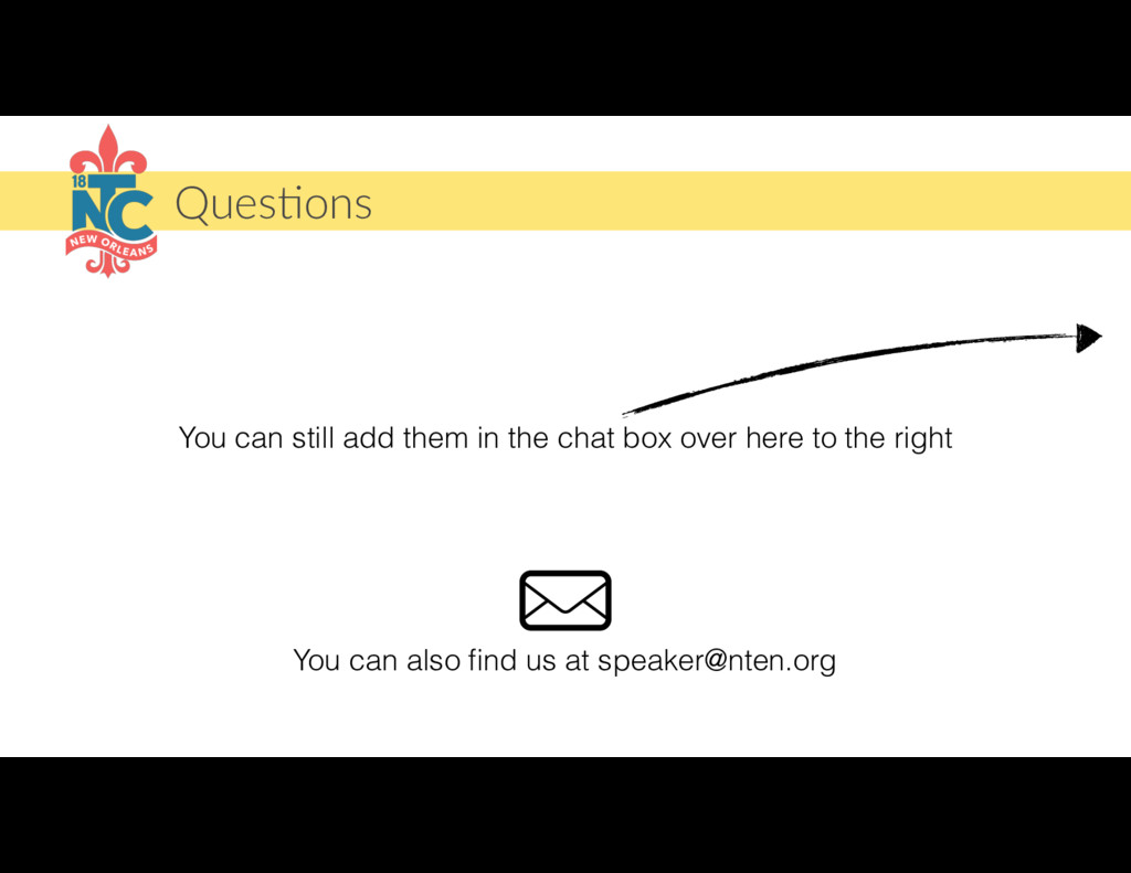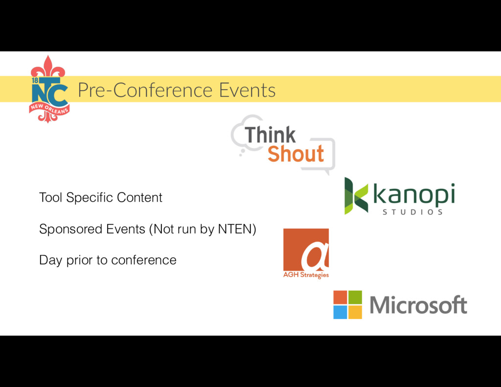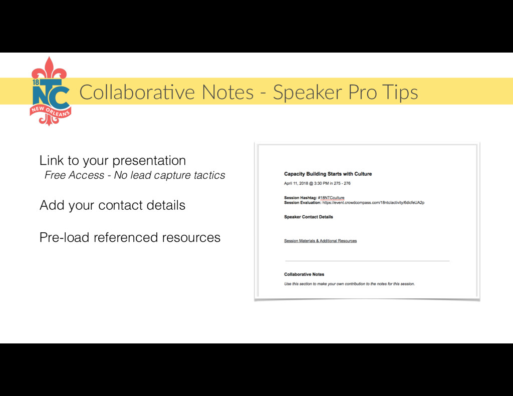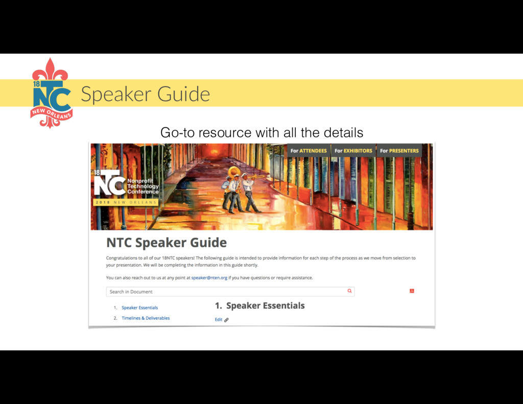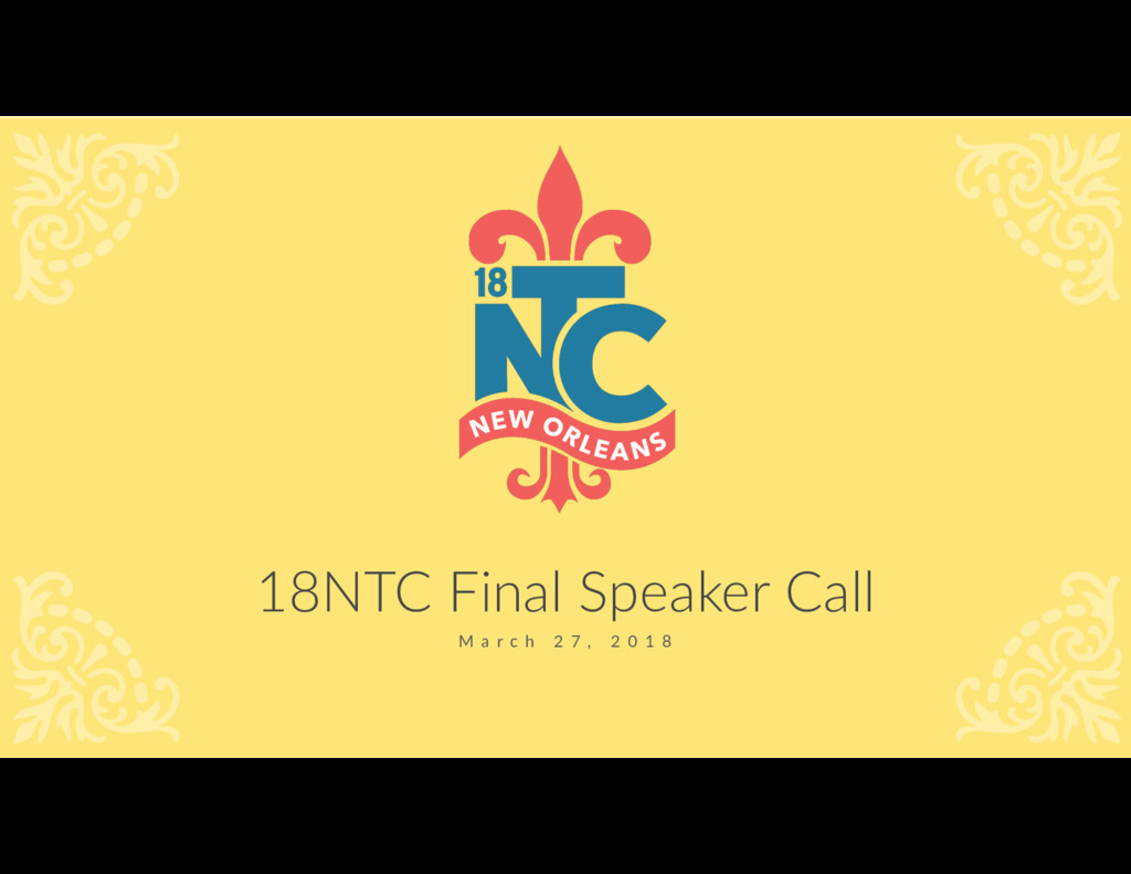 This is the final call for 18NTC speakers. During this call, we will cover what to expect at the event, how to get support onsight and have lots of opportunities to answer whatever questions you may still have.