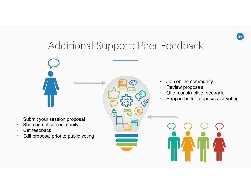 • Share in online community • Get feedback • Edit proposal prior to public voting • Join online community • Review proposals • Offer constructive feedback • Support better proposals for voting