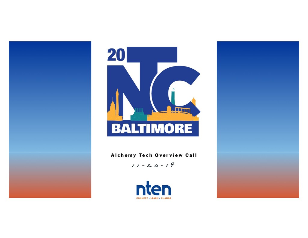 Call to share more information about the 2020 Nonprofit Technology Conference (20NTC) as part of the Alchemy Tech program. What to expect, the next steps in confirming logistics and answer any questions you may have.
