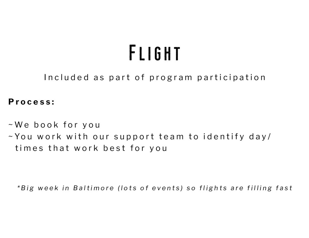 We b o o k f o r y o u ~ Yo u w o r k w i t h o u r s u p p o r t t e a m t o i d e n t i f y d a y / t i m e s t h a t w o r k b e s t f o r y o u I n c l u d e d a s p a r t o f p r o g r a m p a r t i c i p a t i o n * B i g w e e k i n B a l t i m o r e ( l o t s o f e v e n t s ) s o f l i g h t s a r e f i l l i n g f a s t