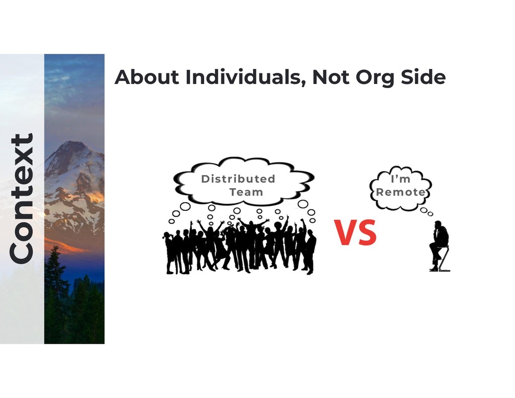 Context About Individuals, Not Org Side I’m Remote Distributed Team