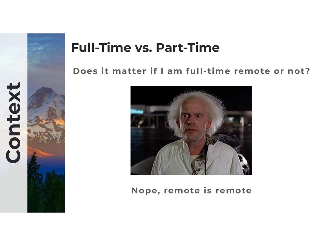 not? Full-Time vs. Part-Time Nope, remote is remote