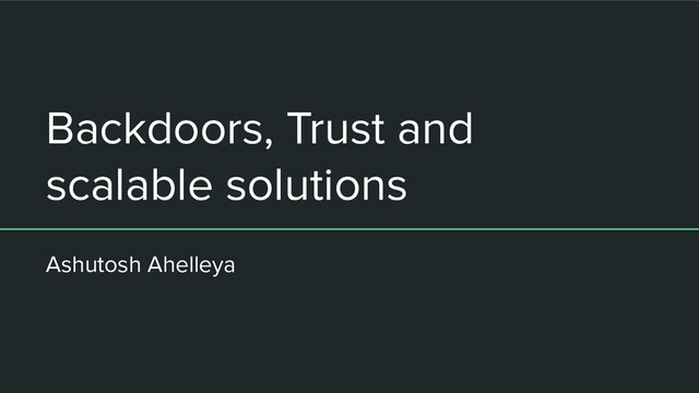 In this presentation I talk primarily about backdoors by going into to the details of Dual EC DRBG works and the underline math behind it. I then discuss the difficulty of detecting such backdoors, its effects on trust.