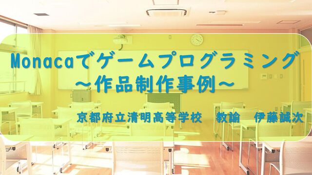 Monacaでゲームプログラミング ~作品制作事例~ 京都府立清明高等学校 教諭 伊藤誠次