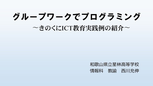 グループワークでプログラミング 〜きのくにICT教育実践例の紹介〜 和歌山県立星林高等学校 情報科 教諭 西川充伸