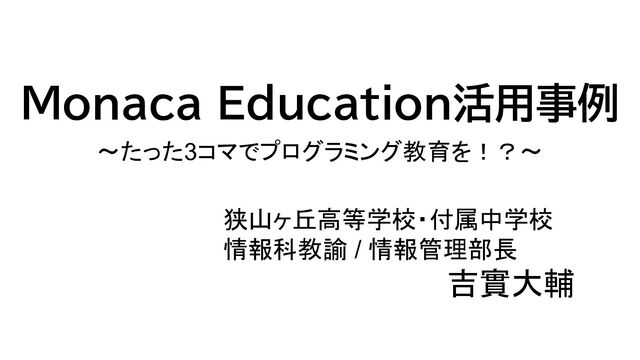 Monaca Education活用事例 ~たった3コマでプログラミング教育を!?~ 狭山ヶ丘高等学校・付属中学校 情報科教諭 / 情報管理部長 吉實大輔