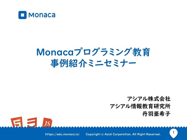 1 https://edu.monaca.io/ Copyright © Asial Corporation. All Right Reserved. Monacaプログラミング教育