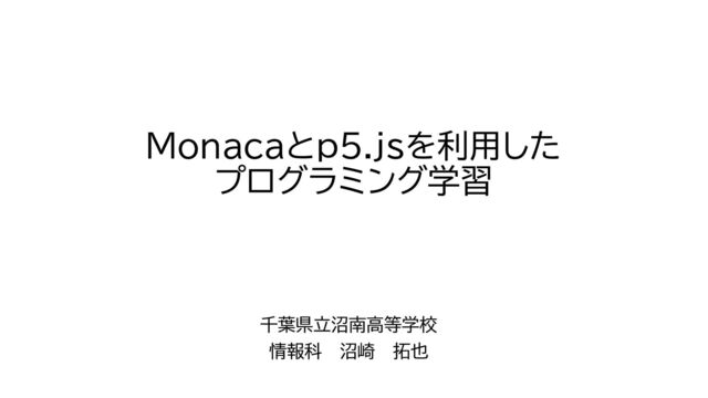 2021年3月26日(土)開催のプログラミング教育実践事例研究会 2022春 ~EdTech導入補助金によるMonaca Education活用事例~での千葉県立沼南高等学校 沼崎拓也先生の発表資料です。