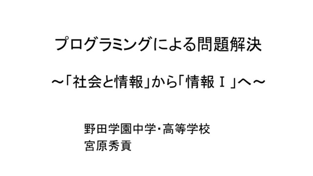 プログラミングによる問題解決 ~「社会と情報」から「情報Ⅰ」へ~ 野田学園中学・高等学校 宮原秀貢
