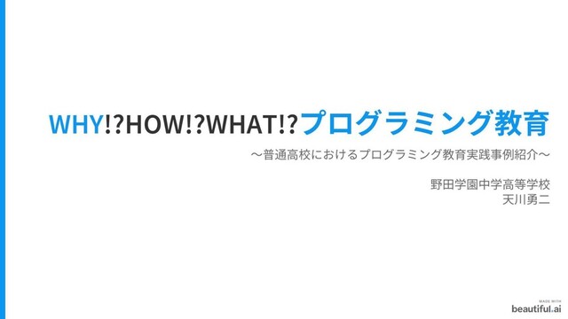 Why!? How!? What!?プログラミング教育 ~普通高校におけるプログラミング教育実...