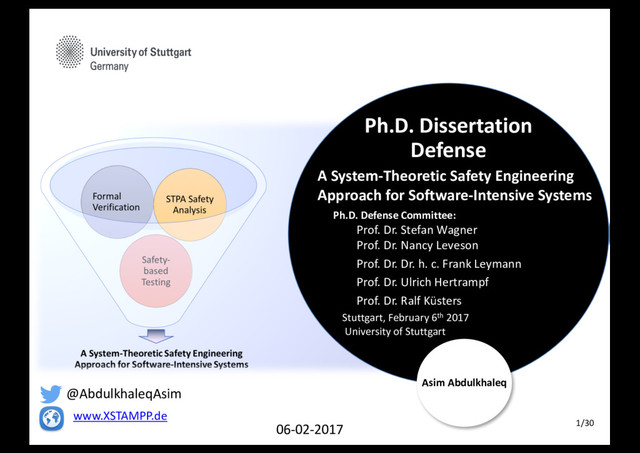 In the software development process, formal verification and functional testing are complementary approaches which are used to verify the functional correctness of software; however, even perfectly reliable software could lead to an accident. The correctness of software cannot ensure the safe operation of safety-critical software systems. Therefore, developing safety-critical software requires a more systematic software and safety engineering process that enables the software and safety engineers to recognize the potential software risks. For this purpose, this dissertation introduces a comprehensive safety engineering approach based on STPA for Software-Intensive Systems, called STPA SwISs, which provides seamless STPA safety analysis and software safety verification activities to allow the software and safety engineers to work together during the software development for safety-critical systems and help them to recognize the associated software risks at the system level.