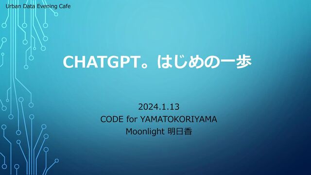 2024年 1月13日開催の「Urban Data Evening Cafe」の資料です. 初心者向けに生成AIやChatGPTの使い方などを紹介しています. 当日の参加者は, ほとんどが生成AIなどをご存じのエンジニアでしたが...