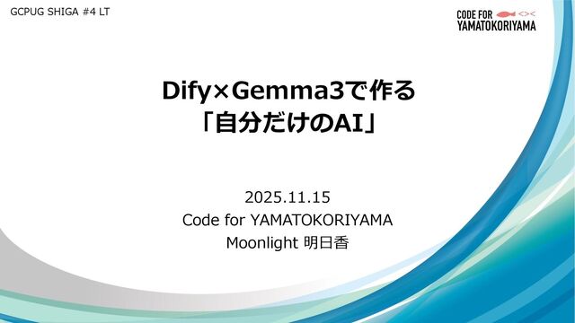 GCPUG SHIGA #4 LT Dify×Gemma3で作る 「自分だけのAI」 2025.11.15 Code for YAMATOKORIYAMA