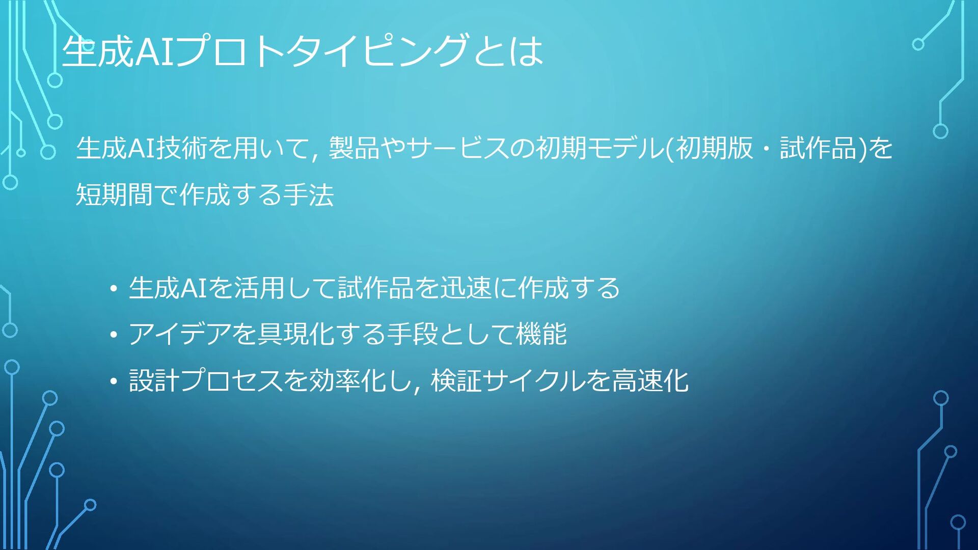 今日お話しすること 生成AIを使ったプロトタイピングは, 試作スピードを劇的に上げる