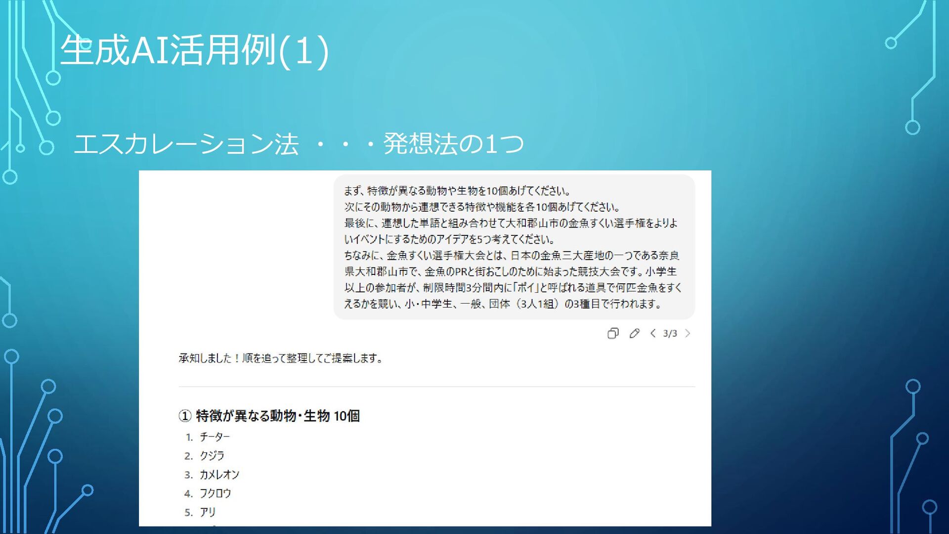 生成AI活用例(1) エスカレーション法 ・・・発想法の1つ