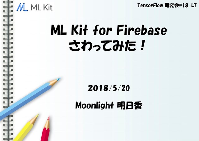 ML Kit for Firebase さわってみた! 2018/5/20 Moonlight 明日香 TensorFlow 研究会#18