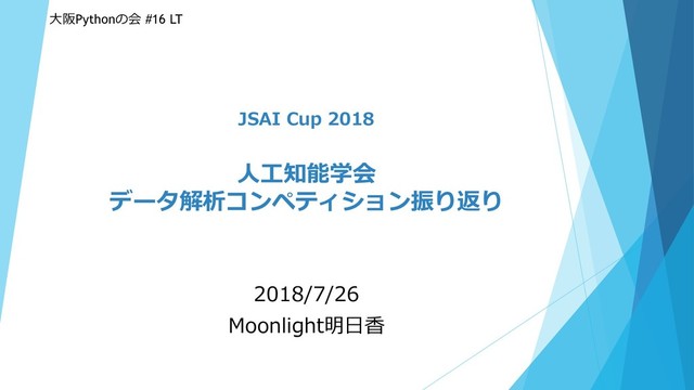 JSAI Cup 2018 人工知能学会 データ解析コンペティション振り返り 2018/7/26 Moonlight明日香 大阪Pythonの会 #16 LT