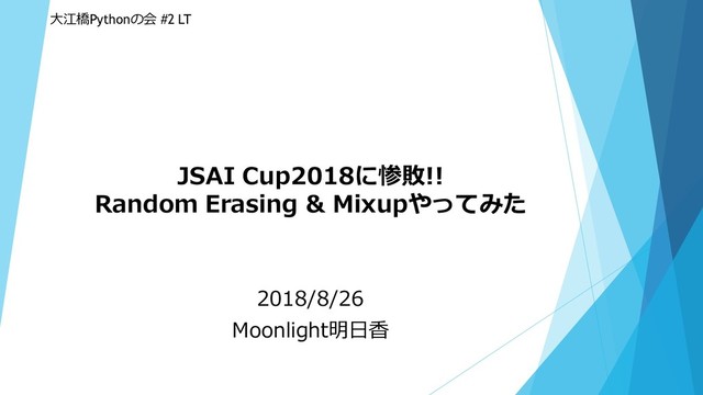 JSAI Cup2018に惨敗!! Random Erasing & Mixupやってみた 2018/8/26 Moonlight明日香 大江橋Pythonの会 #2