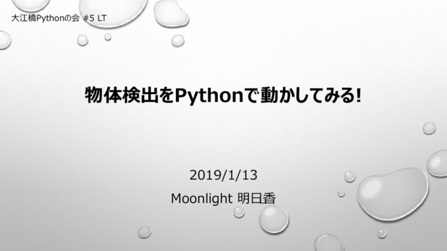 物体検出をPythonで動かしてみる! 2019/1/13 Moonlight 明日香 大江橋Pythonの会 #5 LT
