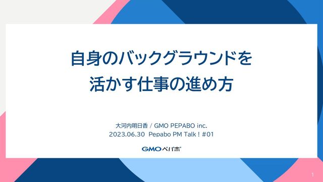 1 自身のバックグラウンドを 活かす仕事の進め方 大河内明日香 / GMO PEPABO inc. 2023.06.30 Pepabo