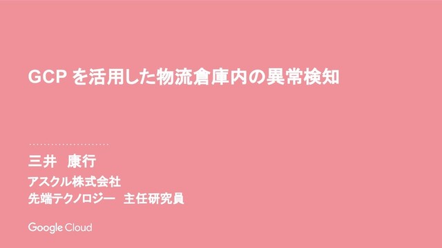 三井 康行 GCP を活用した物流倉庫内の異常検知 アスクル株式会社 先端テクノロジー 主任研究員