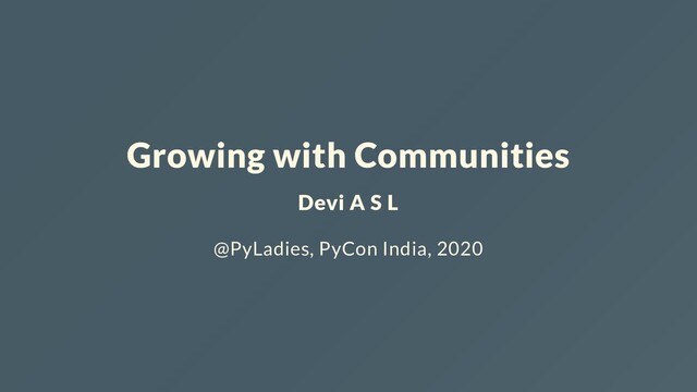 Growing with Communities Devi A S L @PyLadies, PyCon India,