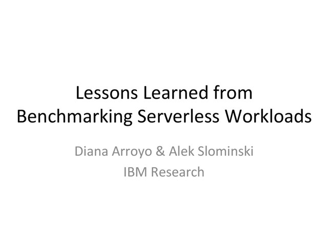 is useful tool for anybody looking on serverless services and want to compare them in more depth. • Planning to write blog post about the experience of serverless workload generaIon and benchmarking and open source the benchmark. If you have some quesIons, feedback, or want to tell me where I am wrong? Aleksander Slominski @aslom (tweet me!) aslom email at us.ibm.com