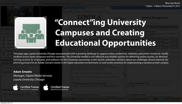 wo years ago, Loyola University Chicago was presented with a growing challenge to supporting online conferences, webinars, and online courses for 16,000 students across seven campuses in four countries. The university needed a cost-effective and reliable solution for delivering online courses, on-demand training sessions for employees, and webinars for the campus community.