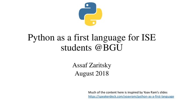 by Benny Chor), EngPyProg (designed by me) • Some history on EngPyProg • High quality material, running (very successfully) for > 6 years • Less theoretic than CS, more applicative focus • No loss of content / concepts!