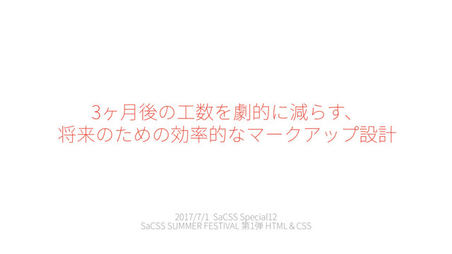 2017/7/1(土)開催の SaCSS Special12 SaCSS SUMMER FESTIVAL 第1弾 HTML&CSS にて発表したスライドです。 変更に強いマークアップ・設計の仕方を解説しています。