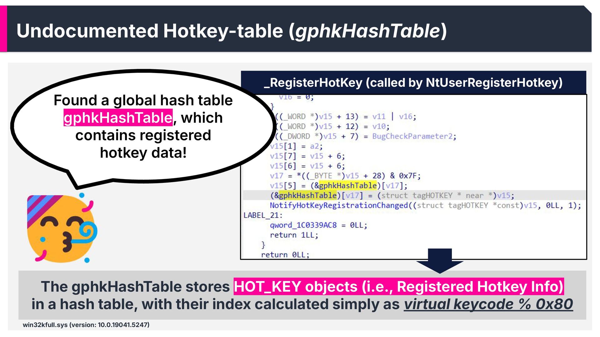 In the latter part of the presentation, I will focus on a hotkey-based keylogging technique disclosed in 2024, examining its threats and discussing detection methods. I will specifically highlight the difficulties in detecting this keylogging technique through ETW and then propose a new method for detecting it without ETW using an undocumented hotkey table.