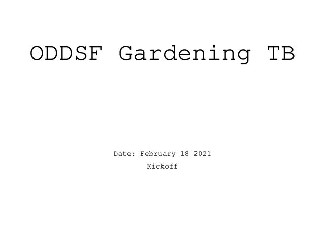ODDSF Gardening TB Date: February 18 2021 Kickoff