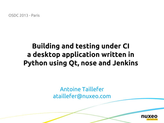 The talk will cover the general concepts of a Python/Qt cross-platform application, the way we used unittest and nose to run functional tests and the whole build process handled by Jenkins. Starting from the application packaging for Windows and Mac OS X with cx_Feeze and py2app, ending with the execution of the tests under the 3 main platforms.