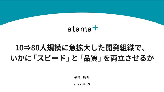 atama plus創業5周年記念イベント・第2夜「急拡大したプロダクトの「技術課題」への向き合い方 〜開発チームの5年間・大公開SP~」にて、Dev Unit Success / 開発基盤チーム エンジニアの深澤(@qluto)が登壇した際の資料です。