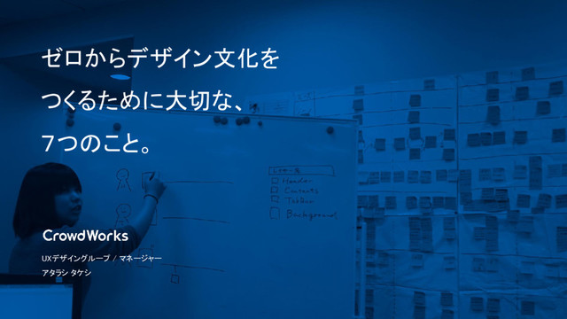 ゼロからデザイン文化を つくるために大切な、 7つのこと。 UXデザイングループ / マネージャー アタラシ タケシ