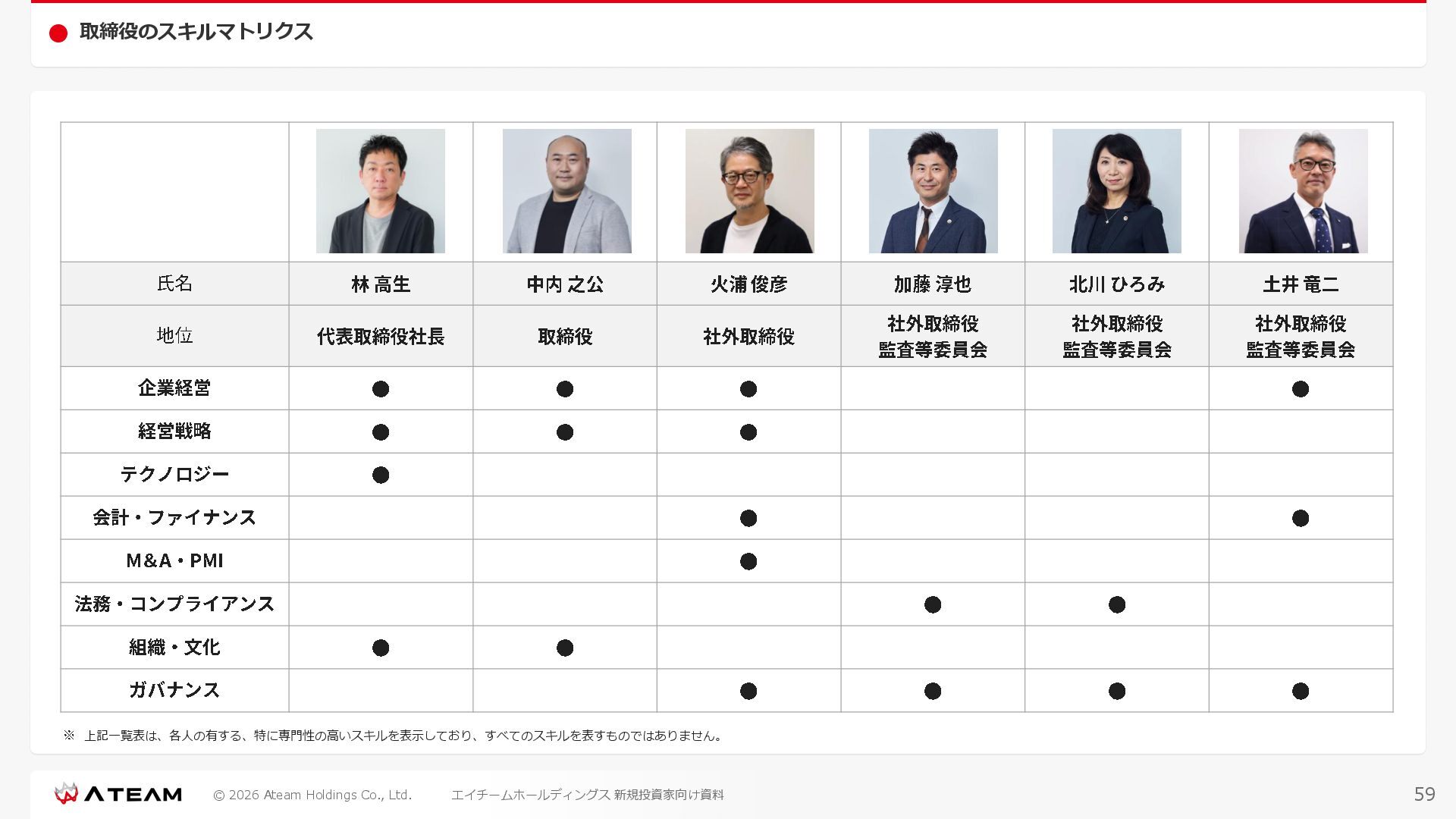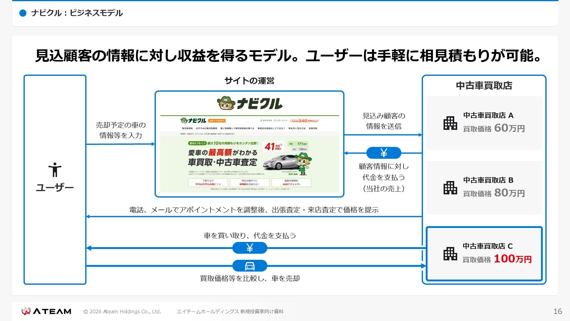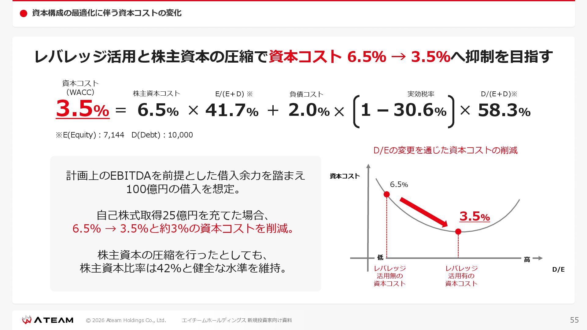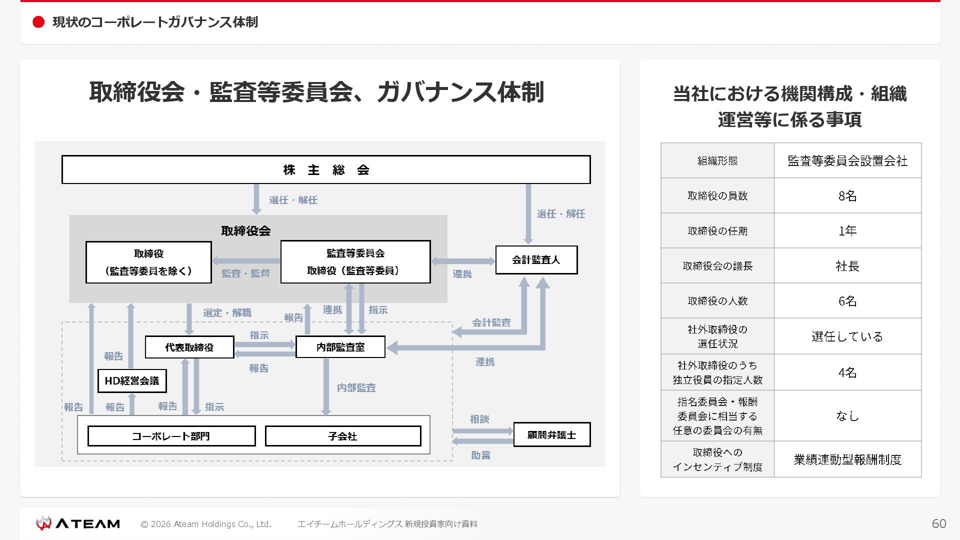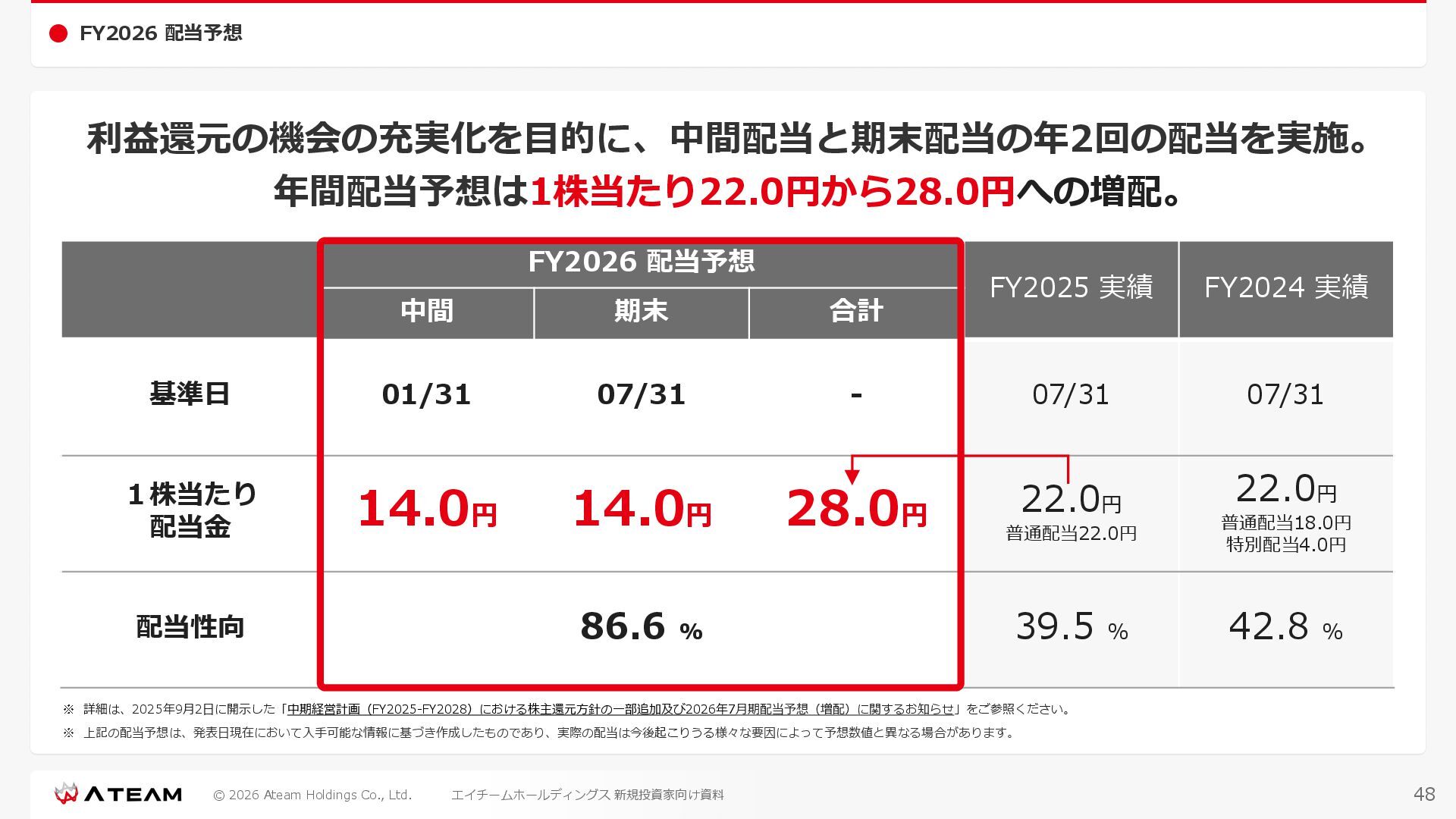 FY2022 FY2023 FY2024 FY2025 売上高 37,674 37,151 31,739 31,252 31,790 27,552 23,917 23,917 Y/Y 増減率(%) +8.9 -1.4 -14.6 -1.5 +1.7 -13.3 -13.2 -0.0 デジタルマーケティング 21,506 24,573 23,289 23,980 25,474 22,131 19,516 19,718 エンターテインメント 16,168 12,577 8,450 7,272 6,316 5,421 4,400 4,199 売上原価 6,960 7,518 7,654 8,193 8,463 5,062 3,546 3,395 原価率(%) 18.5 20.2 24.1 26.2 26.6 18.4 14.8 14.2 販売管理費 26,012 26,820 22,811 22,357 23,625 21,945 19,808 19,676 販売管理費率(%) 69.0 72.2 71.9 71.5 74.3 79.7 82.8 82.3 費用総額(売上原価+販売管理費) 32,973 34,339 30,465 30,550 32,089 27,008 23,355 23,071 人件費・採用費 4,754 6,032 6,274 6,273 5,949 5,594 5,000 4,999 広告宣伝費 14,805 15,048 12,444 12,380 13,998 13,136 12,539 11,822 広告宣伝費率(%) 39.3 40.5 39.2 39.6 44.0 47.7 52.4 49.4 デジタルマーケティング 10,715 12,452 11,648 11,813 12,711 12,778 12,347 11,533 エンターテインメント 3,785 2,355 706 494 1,219 302 181 281 支払手数料等 6,117 5,387 4,662 5,180 4,719 3,392 2,869 2,587 外注・サーバー費 2,277 2,574 2,115 2,058 2,029 1,243 1,029 818 オフィス賃料 1,080 1,179 1,142 1,129 1,011 891 688 640 その他(費用総額-上記費用) 3,937 4,116 3,825 3,528 4,380 2,750 1,227 2,203 EBITDA 5,199 3,562 1,847 1,149 122 1,115 711 1,273 調整後EBITDA 5,206 3,562 1,847 1,170 122 1,115 740 1,719 営業利益 4,701 2,811 1,273 701 -298 543 562 845 Y/Y 増減率(%) +15.3 -40.2 -54.7 -44.9 ー ー +3.4 +50.3 デジタルマーケティング 2,864 2,927 1,853 1,535 1,533 1,329 1,248 1,334 エンターテインメント 3,587 1,532 776 369 -894 166 -38 518 共通部門 -1,751 -1,648 -1,356 -1,203 -937 -951 -647 -1,008 営業利益率(%) 12.5 7.6 4.0 2.2 ー 2.0 2.4 3.5 経常利益 4,730 2,809 1,249 895 -219 711 609 1,585 税引前当期純利益 4,732 2,354 0 1,511 -734 432 1,152 1,875 親会社株主に帰属する当期純利益 3,306 1,473 -519 877 -1,337 143 953 1,036 人員数 944 1,118 1,177 1,162 1,082 910 861 830 デジタルマーケティング 544 635 703 682 629 485 442 430 エンターテインメント 312 381 382 373 351 337 324 300 共通部門 88 102 92 107 102 88 95 100 P/L(FY2017 - FY2025 通期) (百万円) 63 FY2025のセグメント区分変更後のPLで記載しております。 エイチームホールディングス 新規投資家向け資料