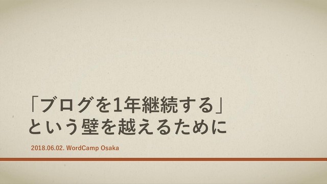 「ブログを1年継続する」 という壁を越えるために 2018.06.02. WordCamp Osaka