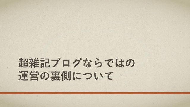 よく言われるブログ論 • ジャンルは絞れ! • 固定ファンがつきやすいし、おそらく正論 • でも続けられる気がしなかった… • 覚えやすいブログ名で! •