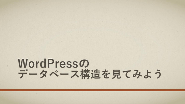 今日おはなしすること 1. データベースとは? 2. リレーションシップのおはなし 3. WPのデータベース構造 4. どんないいことがあるの? できるだけ