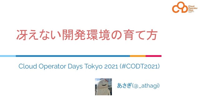 冴えない開発環境の育て方 Cloud Operator Days Tokyo 2021 (#CODT2021) あさぎ(@_athagi)