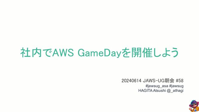 社内でAWS GameDayを開催しよう 20240614 JAWS-UG朝会 #58 #jawsug_asa #jawsug HAGITA Atsushi @_athagi