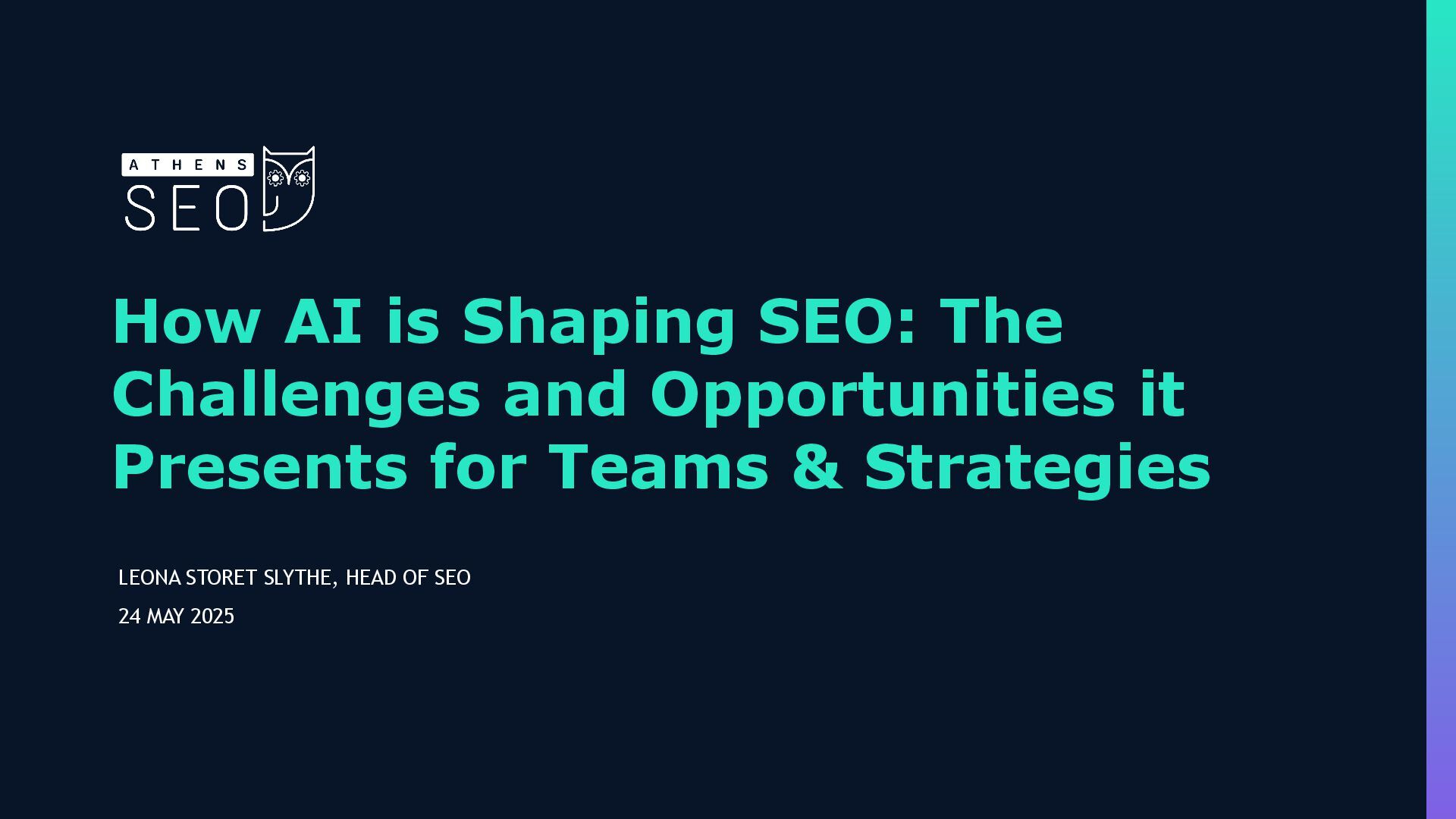 AI is revolutionizing the way we approach SEO - but what does that really mean for teams, leadership, and day-to-day strategy? In this thoughtful and forward-looking session, Leona Storet Slythe explores how AI is transforming workflows, elevating expectations, and demanding a new balance between tech and human intelligence.