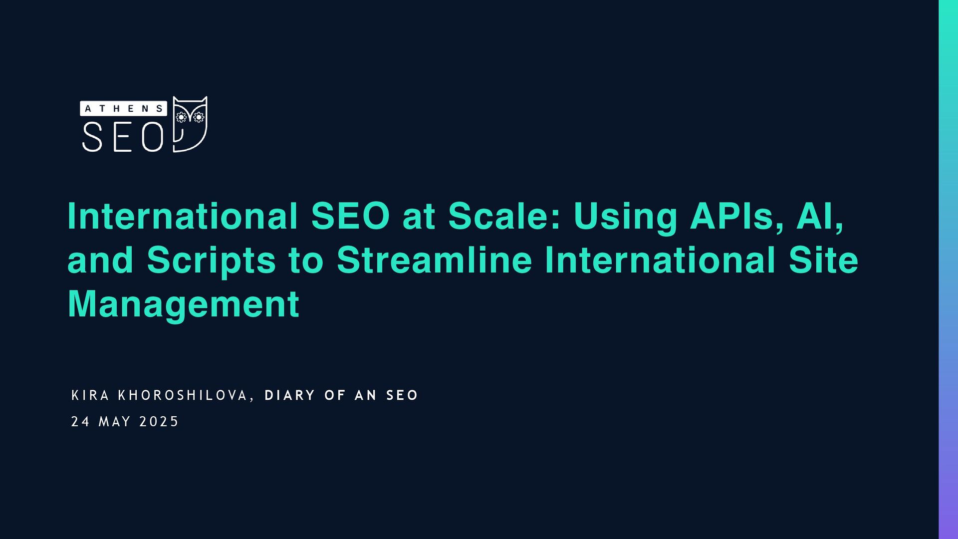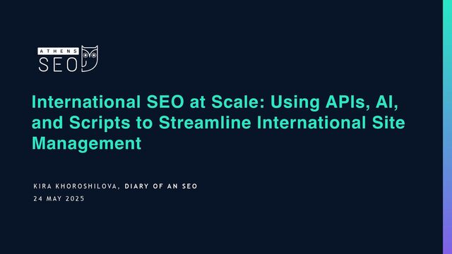 Managing SEO across dozens of markets is no easy feat - but it doesn’t have to be manual. In this practical and innovative session, Kira Khoroshilova (Founder of Diary of an SEO) showcases how automation, AI, and custom scripts can transform the chaos of international SEO into a streamlined, scalable operation.