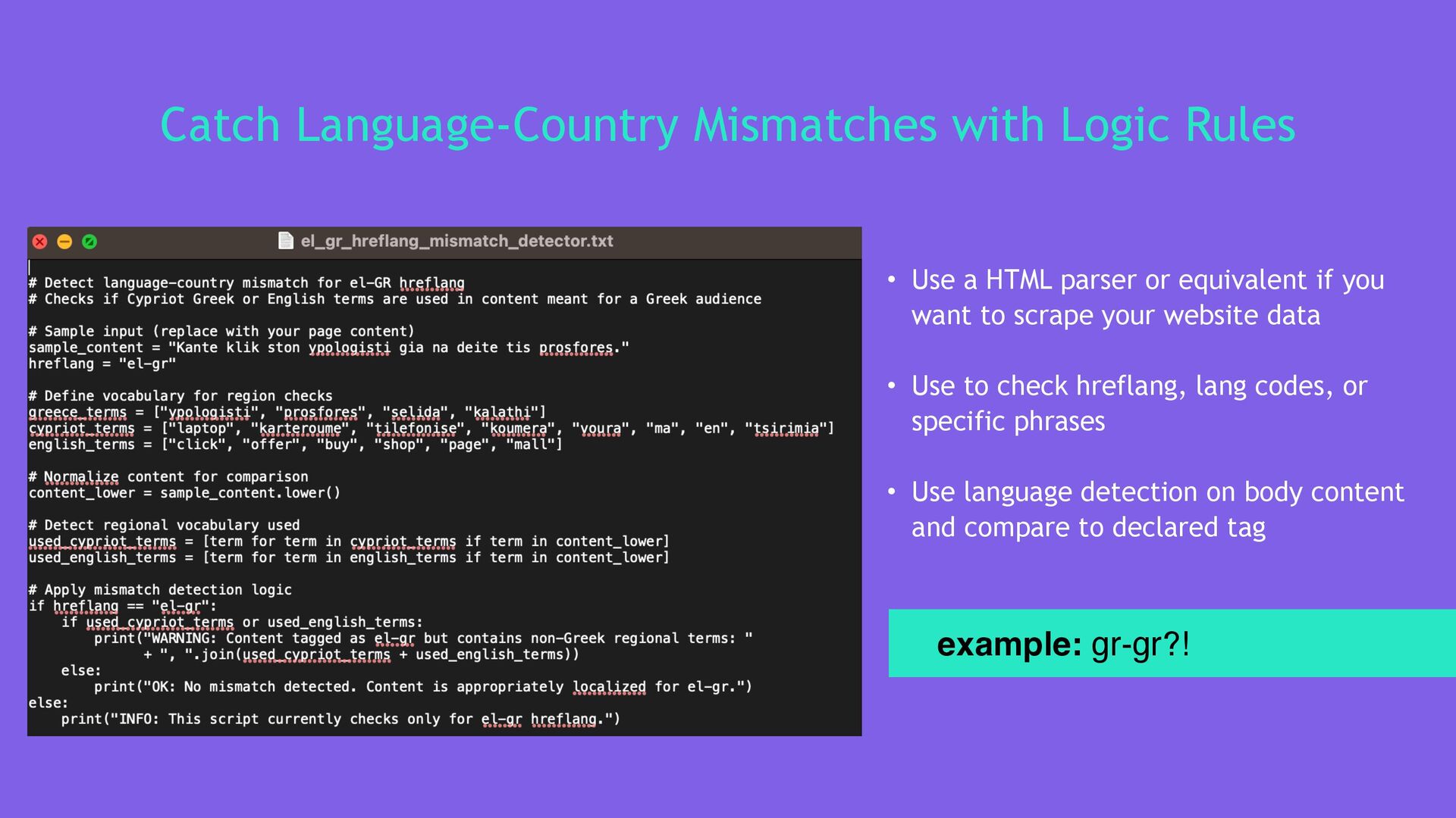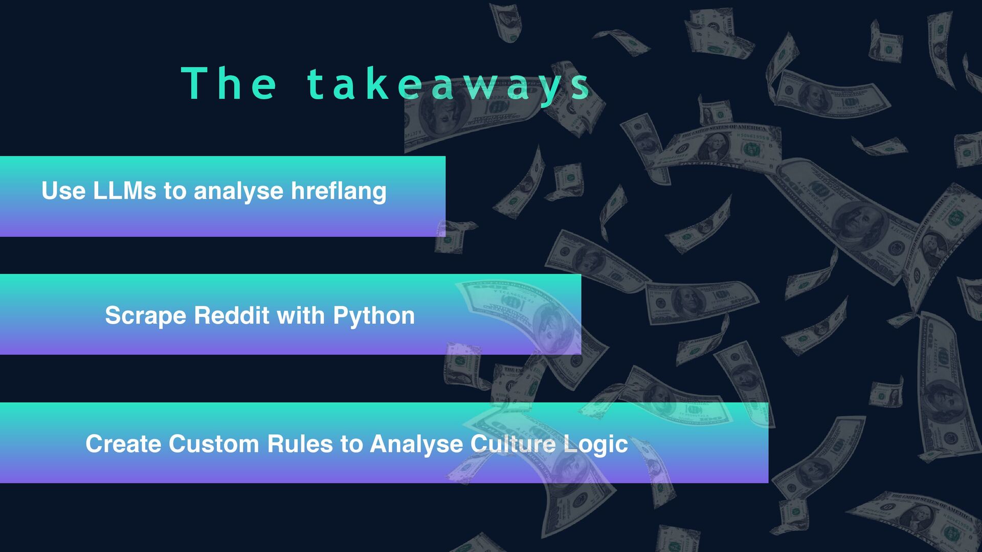 From dynamic hreflang audits and geo-targeting APIs to multilingual keyword research workflows and AI-powered translation dos and don’ts, this talk is packed with actionable insights. Kira shares custom Python scripts, cultural targeting frameworks, and examples of how to scale localisation without sacrificing relevance or performance.