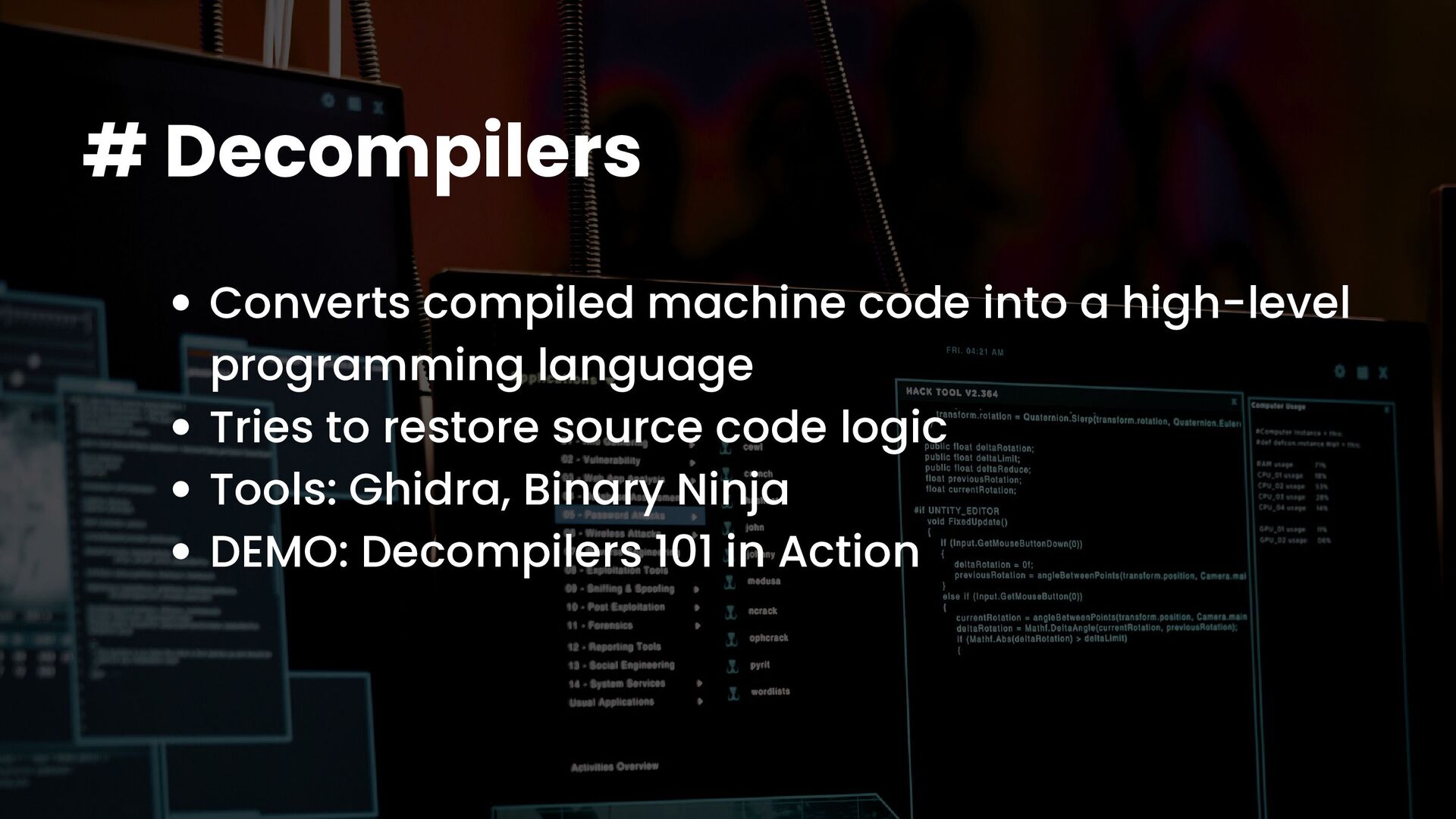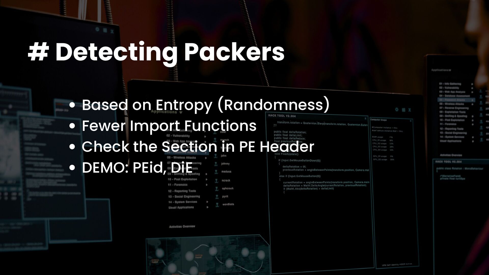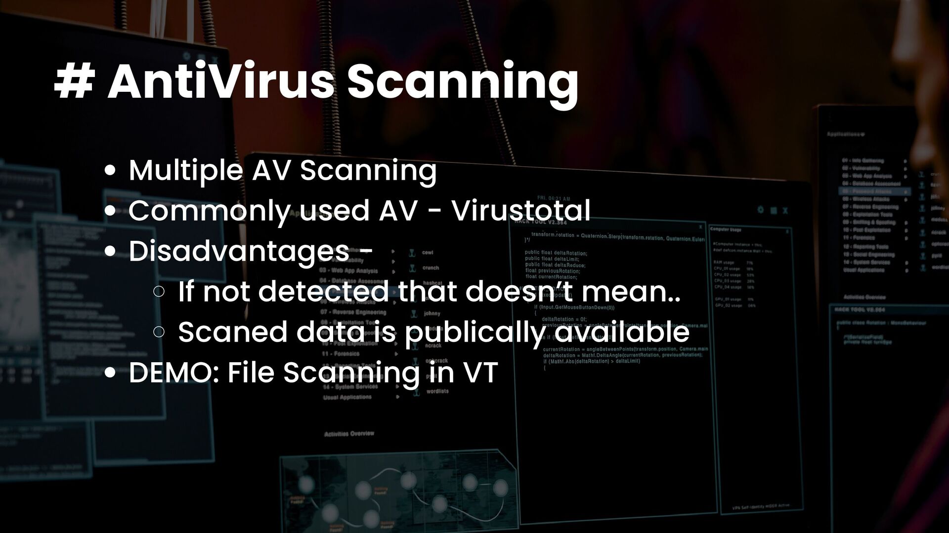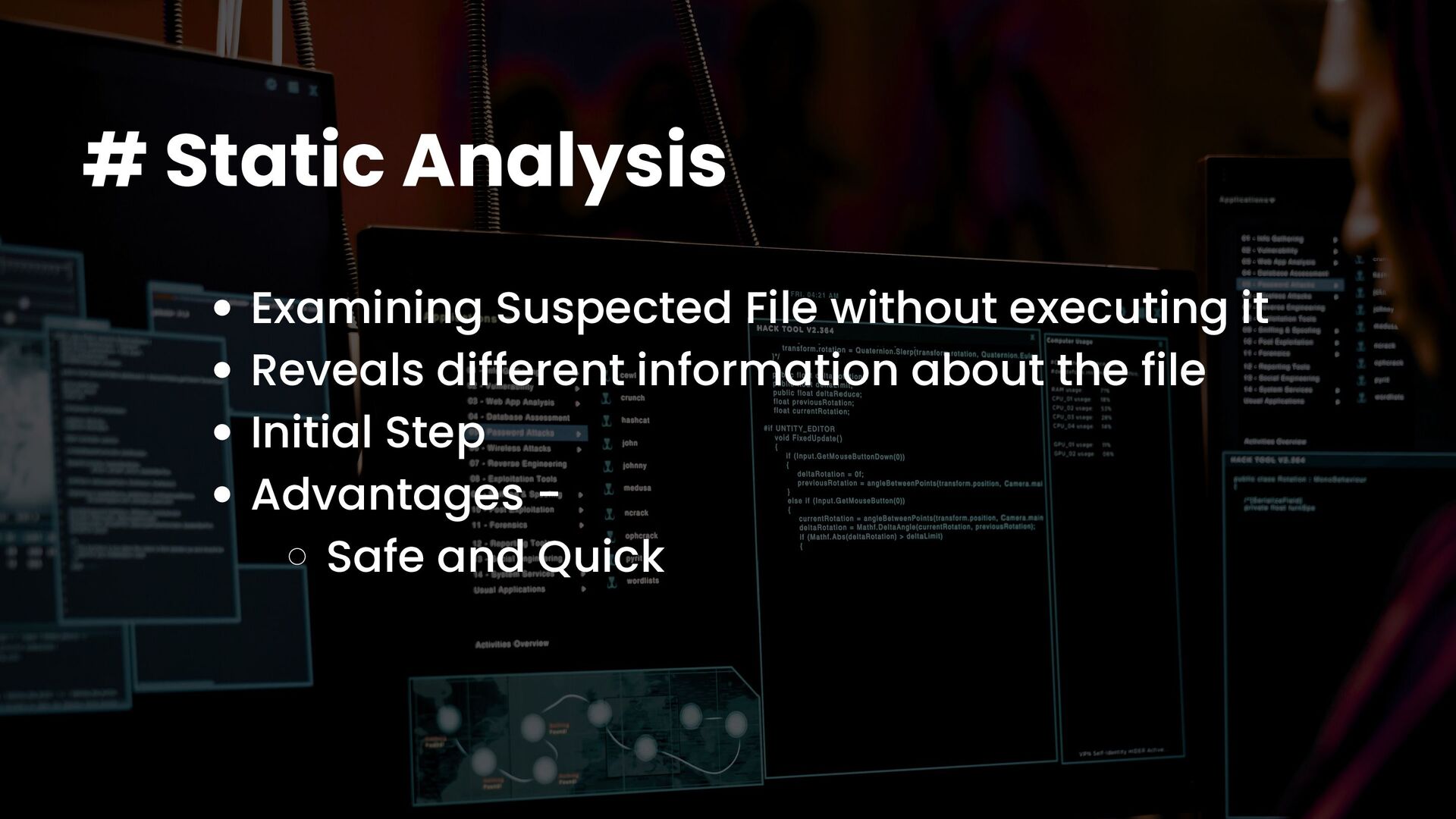 A talk on Malware Analysis covering areas like -