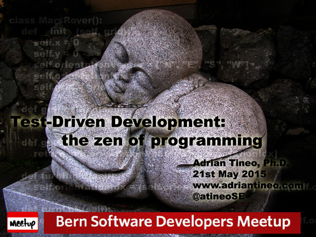 the experiment at https://blog.deltaforce.io/wordpress/running-a-coding- dojo-to-improve-python-tdd-skills/ • Clone the git repo at https://github.com/adriantineo/MarsRoverKataTDD.git