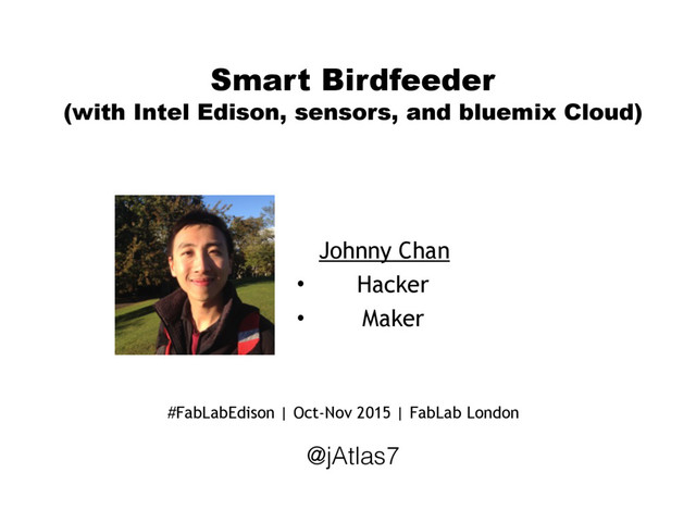 Chan • Hacker • Maker #FabLabEdison | Oct-Nov 2015 | FabLab London @jAtlas7