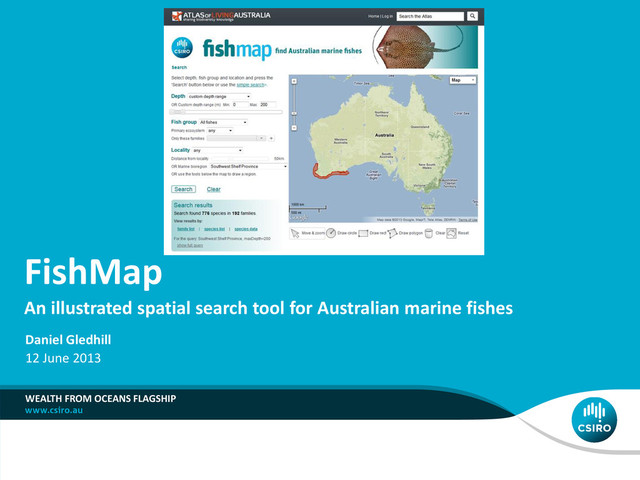 [email protected] w www.csiro.au/ WEALTH FROM OCEANS NATIONAL RESEARCH FLAGSHIP Thanks to dozens of people who have contributed to the project, including: The ALA Team, particularly Mark Woolston, Dave Martin, Peter Doherty, Chris Flemming, Miles Nicholls, [Peter Neville and Donald Hobern] From CSIRO Marine and Atmospheric Research: Peter Last, William White, Tony Rees, John Pogonoski, Carlie Devine, Louise Conboy, Alastair Graham Numerous fisho’s nationally, including those from our state museums and fisheries departments