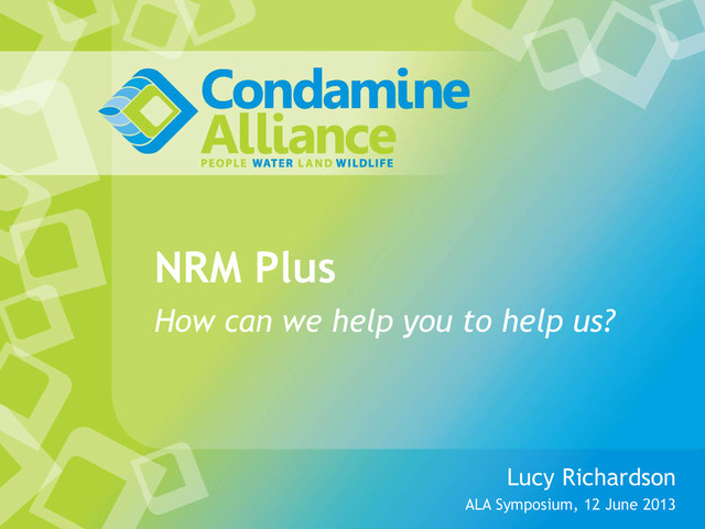 National standard forms • Nation-wide data sharing • Really knowing where stuff is • Good decision-making • Efficient and effective action • Improved condition & management of natural resources across Australia What Could Really Happen?