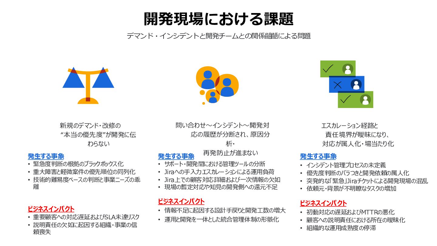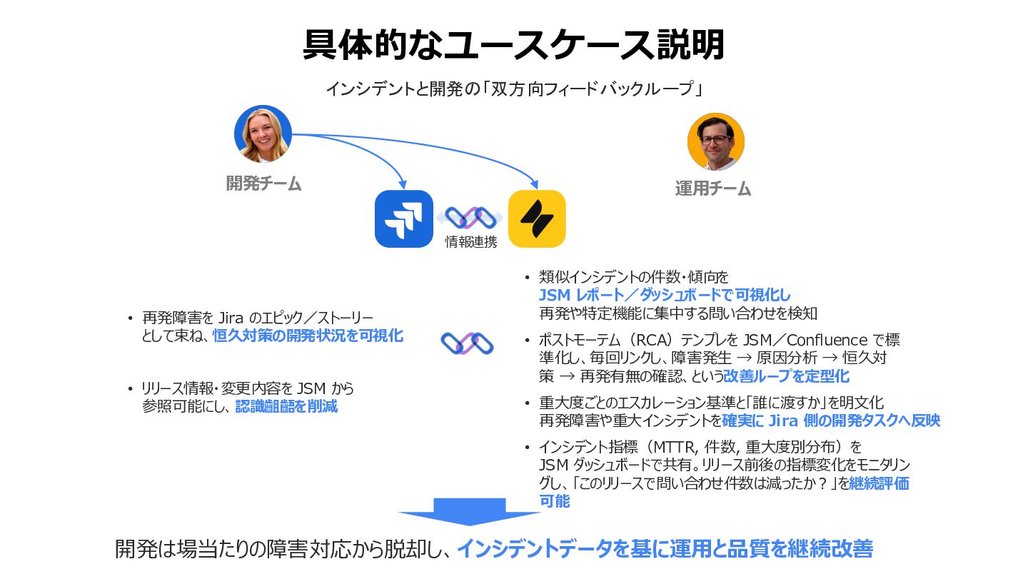 本ウェビナーでは、Jira をお使いの方を主な対象に、Jira+Jira Service Managementの“鉄板コンビ”で、開発と運用が同じデータとワークフローを共有することメリットをご紹介し、インシデント対応や変更管理を強化する方法を解説します。